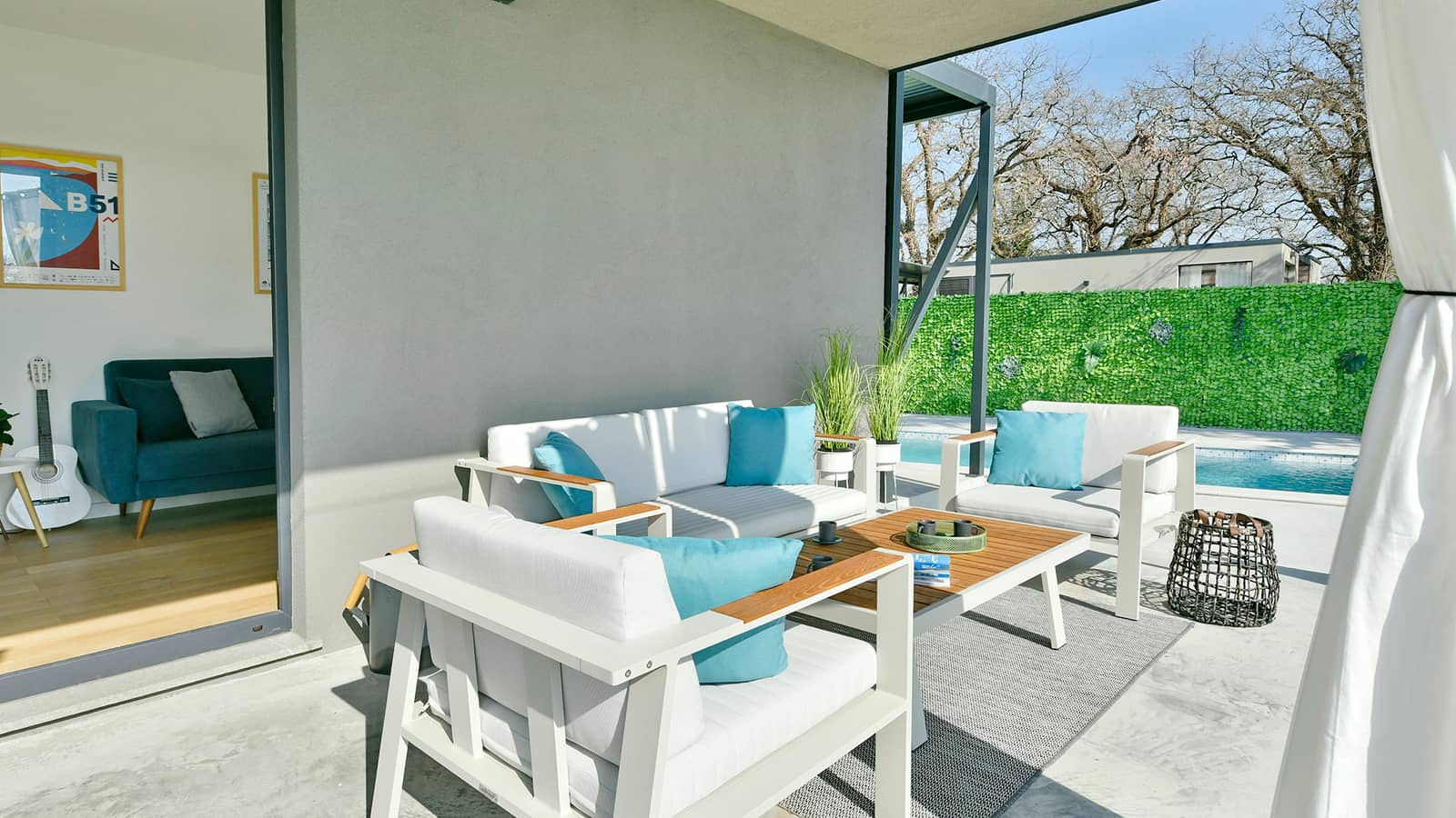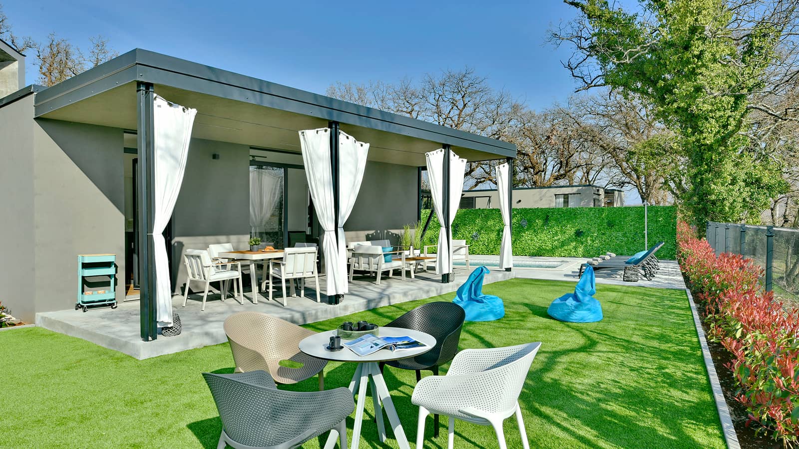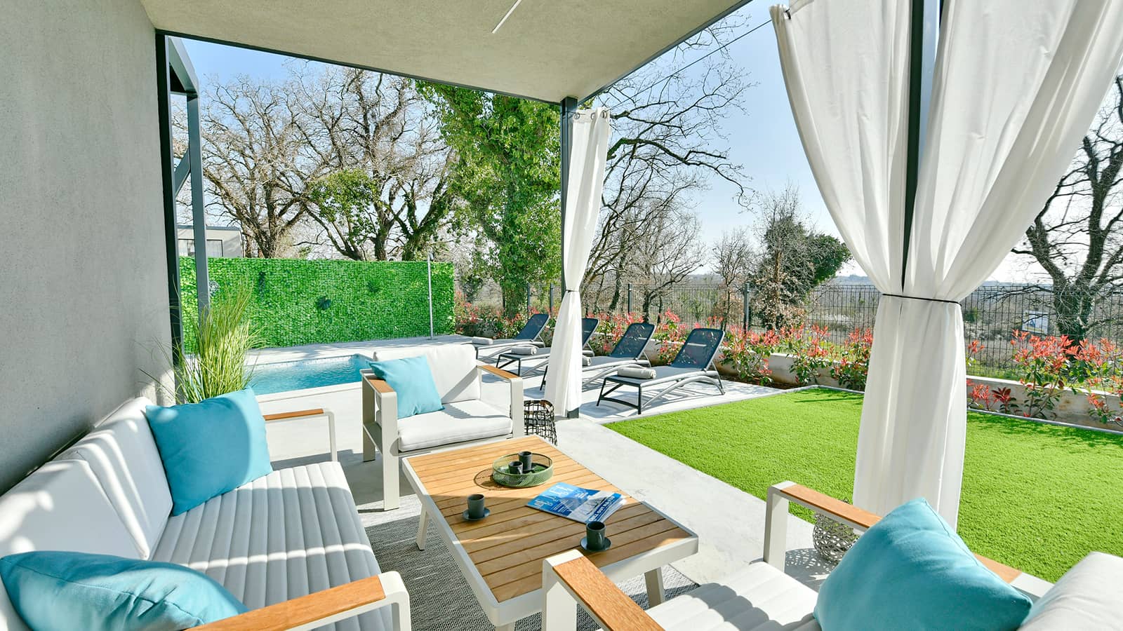 À l'extérieur, la villa dispose d'un jardin pittoresque avec une piscine privée et une terrasse couverte équipée d'un coin salon et d'une table à manger, parfaite pour profiter des repas en plein air. Vous pourrez vous détendre sur les chaises longues au bord de la piscine, savourer une boisson rafraîchissante à l'ombre ou vous baigner dans la piscine accueillante.