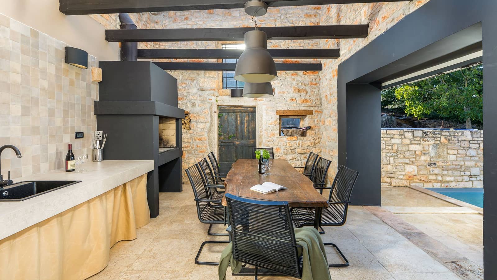 L'un des atouts majeurs de la Villa Vira est sa charmante cuisine d'été, située dans une dépendance en pierre rénovée avec un toit rétractable. Vous pourrez y préparer vos repas et dîner sous les étoiles, profitant des douces soirées d'été dans un cadre authentique.