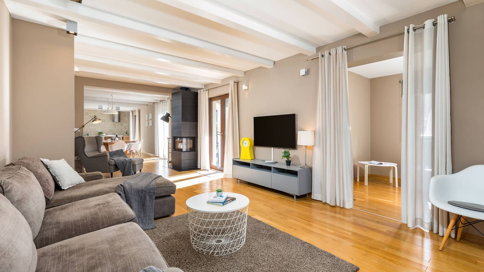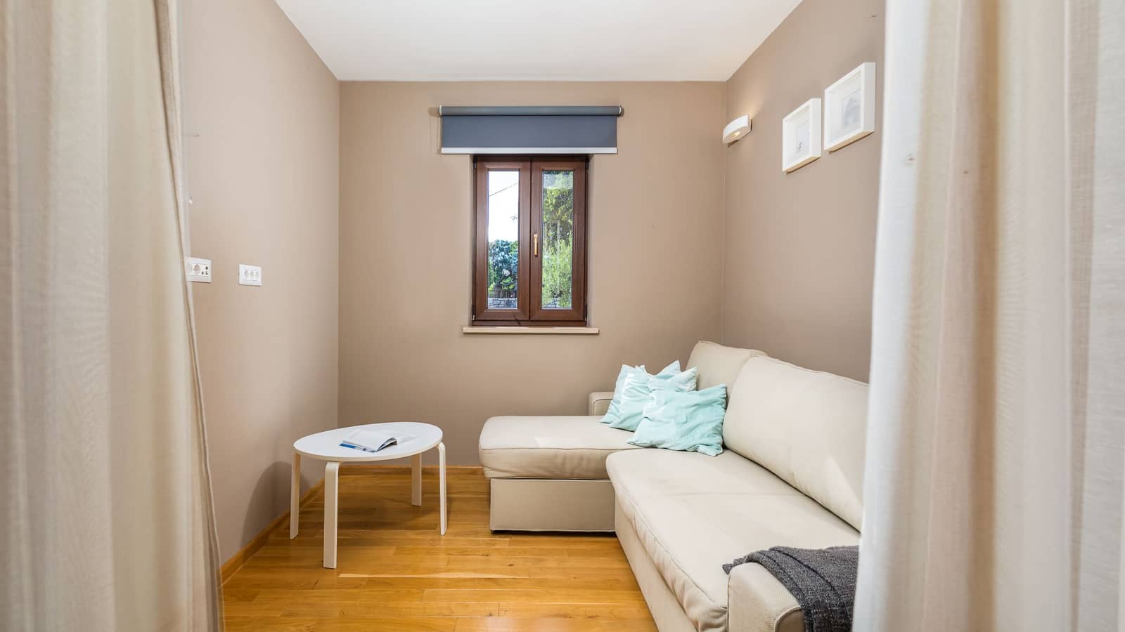 À l'intérieur, la villa est meublée avec goût, avec des matériaux élégants et de haute qualité, et des détails soignés. Au rez-de-chaussée, le spacieux séjour ouvert comprend un salon confortable, un coin repas et une cuisine entièrement équipée, parfaits pour les réunions de famille ou les moments de détente entre amis. Une pièce supplémentaire avec un canapé-lit deux places agrandit l'espace de vie et offre des couchages supplémentaires.