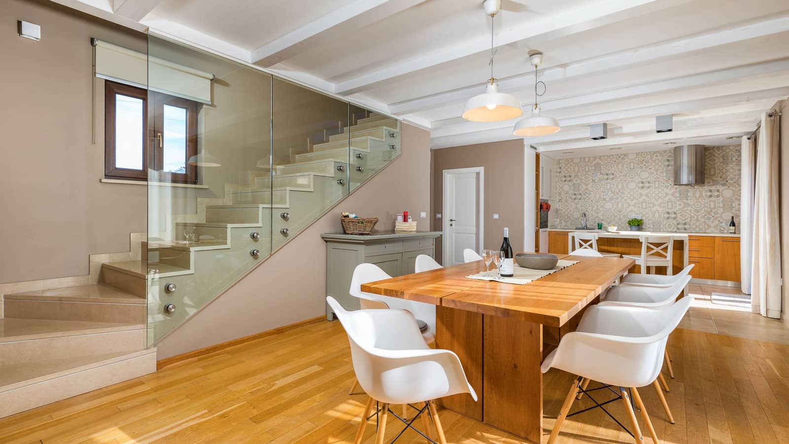L'agencement de la villa allie confort et intimité : deux escaliers séparés mènent à l'étage supérieur, une aile comprenant deux chambres et l'autre trois. Cette conception réfléchie fait de la Villa Vira un lieu idéal pour les familles ou les groupes recherchant un peu d'espace personnel.